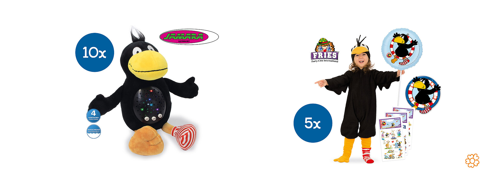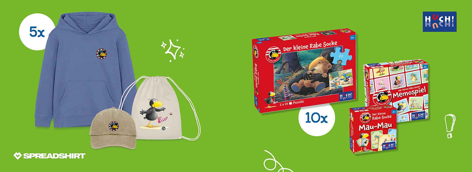 Mach mit bei unserer rabenstarken Jubiläums-Verlosung und sichere dir die Chance auf viele kunterbunte Gewinne rund um Socke und seine Freunde.