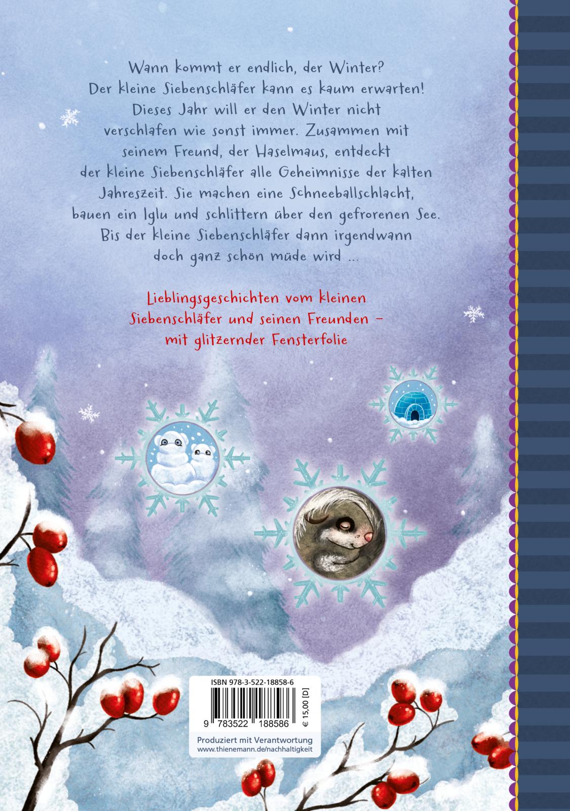 Winterzauber mit dem kleinen Siebenschläfer – mit Siebenschläfer-Motiven auf glitzernder Fensterfolie als Extra