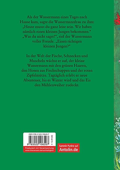 Eines Tages bekommt die Wassermannsfamilie im Mühlenweiher Nachwuchs. Der kleine Wassermann mit grünen Haaren und Schwimmhäuten zwischen den Zehen gedeiht prächtig und findet überall Freunde. Bald geht der kleine Wassermann mit seinem Vater oder mit seinem Freund, dem Karpfen Cyprinus, auf Entdeckungsreise. Er lernt sich im Weiher zurechtzufinden und erlebt tagtäglich neue Abenteuer, bis es Winter wird und das Eis den Mühlenweiher wieder zudeckt.