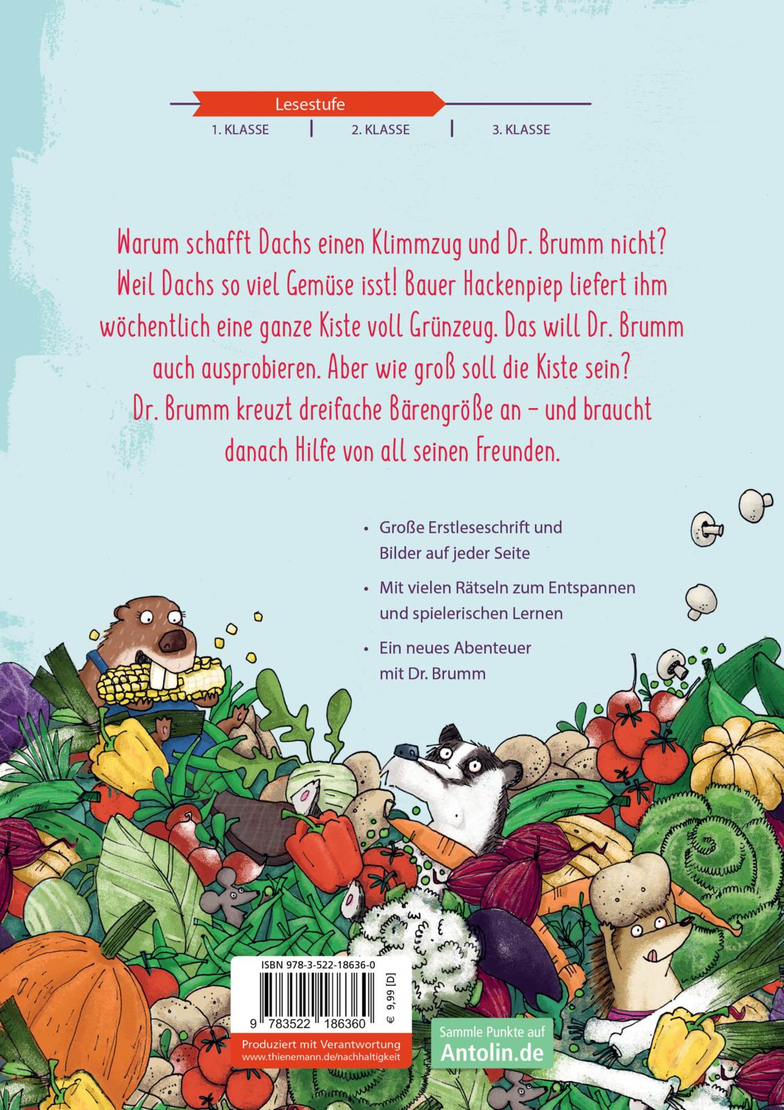 Warum schafft Dachs locker einen Klimmzug - und Dr. Brumm nicht? Ganz klar: Er isst mehr Gemüse! Fortan will auch Dr. Brumm fit werden und bestellt sich kurzerhand eine XXXXXXL-Gemüsekiste. Doch die hat es in sich - im wahrsten Sinne des Wortes. Ein neues Abenteuer zum Lachen, Staunen und Miträtseln!