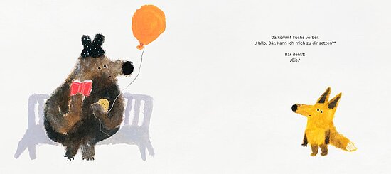 Bär ist glücklich. Alles, was er braucht, sind sein Buch, sein Luftballon, sein Keks und seine Lieblingsbank. Doch als Fuchs, Wolf, Hase und schließlich auch noch Elefant etwas von seinen Schätzen haben wollen, steht Bär vor einer großen Herausforderung: Soll er wirklich teilen? Diese humorvolle und einfühlsame Geschichte zeigt Kindern, wie schwierig es manchmal sein kann, die eigenen Bedürfnisse wahrzunehmen und auszudrücken. Mit seinen ausdrucksstarken, wolligen Illustrationen und der liebenswerten Hauptfigur des Bären hilft Natalia Shaloshvilis „Bär“ Kindern, ihre eigenen Gefühle besser zu verstehen.