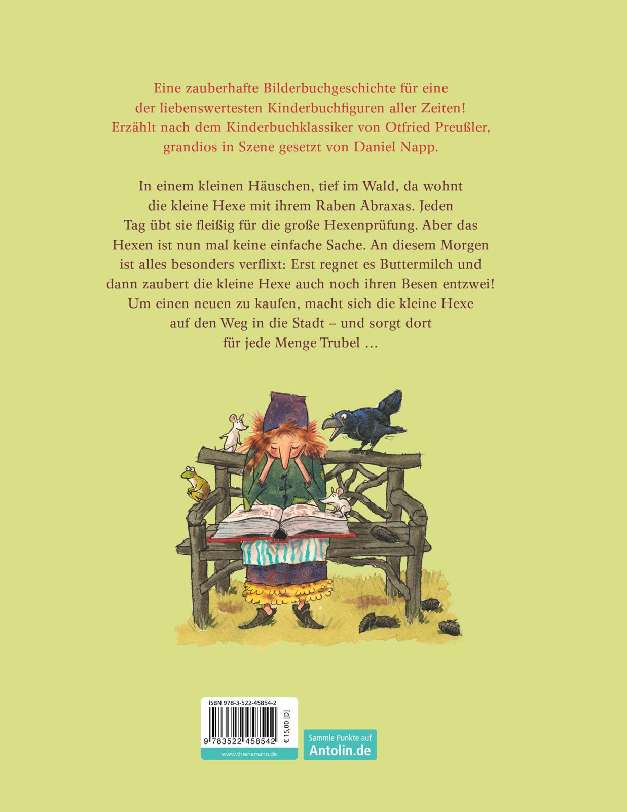 „Ein neues Abenteuer von der kleinen Hexe und ihrem ständigen Begleiter, dem Raben Abraxas, zauberhaft in Szene gesetzt von Daniel Napp.“