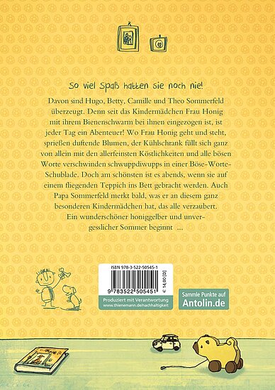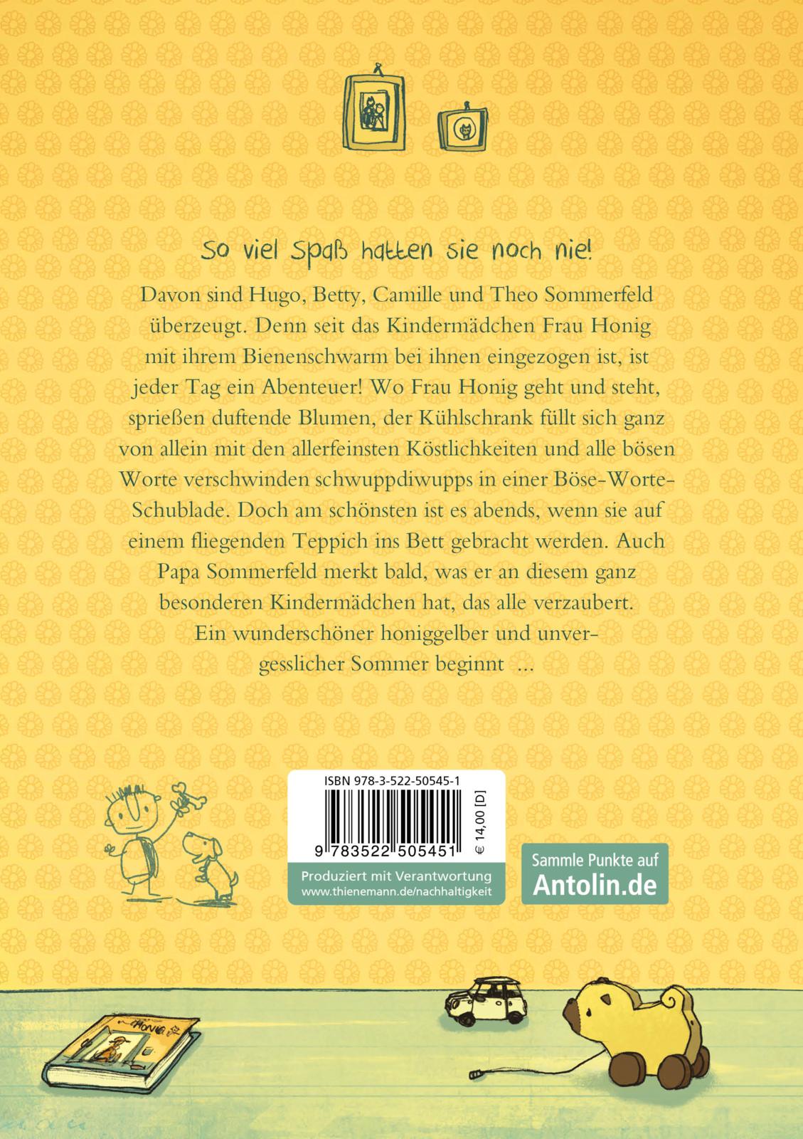 Zauberhaft und magisch – das ist Frau Honig! Wo das Kindermädchen auftaucht, dauert es nicht lange, bis etwas Ungewöhnliches passiert! Auch die Kinder der Familie Sommerfeld staunen nicht schlecht, als von einer Sekunde auf die andere der Kühlschrank mit den feinsten Köstlichkeiten gefüllt ist oder alle bösen Worte schwuppdiwupps in einer Schublade verschwinden. Doch den größten Spaß, den haben sie abends, wenn sie auf einem fliegenden Teppich ins Bett gebracht werden.