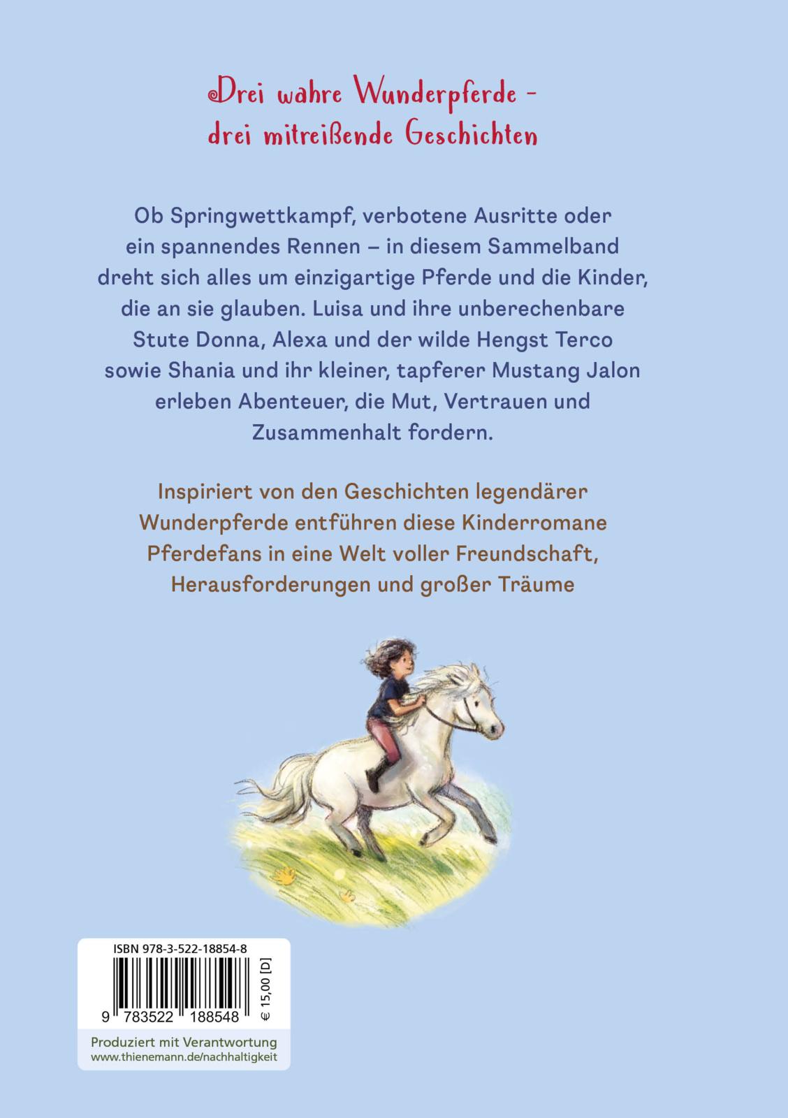 Ob Springwettkampf, verbotene Ausritte oder ein spannendes Rennen – in diesem Sammelband dreht sich alles um einzigartige Pferde und die Menschen, die an sie glauben. Luisa und ihre unberechenbare Stute Donna, Alexa und der wilde Hengst Terco sowie Shania und ihr kleiner, mutiger Mustang Jalon erleben Abenteuer, die Mut, Vertrauen und Zusammenhalt fordern.