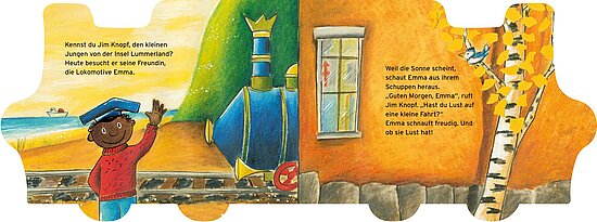 - Pappbilderbuch in Form der Lokomotive Emma zum Aufstellen