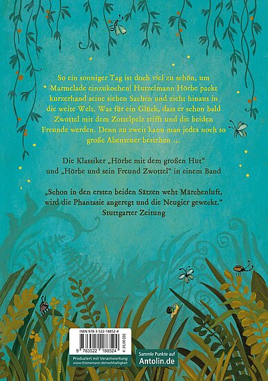 So ein sonniger Tag ist doch viel zu schön, um Marmelade einzukochen! Hutzelmann Hörbe packt kurzerhand seine sieben Sachen und zieht hinaus in die weite Welt. Was für ein Glück, dass er schon bald Zwottel mit dem Zottelpelz trifft und die beiden Freunde werden. Denn zu zweit kann man jedes noch so große Abenteuer bestehen …