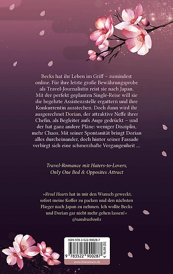 Doch statt die Reise allein anzutreten, wird ihr Dorian, der arrogante und viel zu attraktive Neffe ihrer Chefin, als Begleiter zugeteilt. Was als beruflicher Albtraum beginnt, entwickelt sich zu einem emotionalen Abenteuer: Während Becks versucht, ihre perfekt geplante Route durchzuziehen, bringt Dorian mit seiner Spontanität und seinem Charme alles durcheinander. Zwischen den Neonlichtern Tokios und den stillen Tempeln Kyotos prallen ihre Welten aufeinander – und die Funken fliegen.