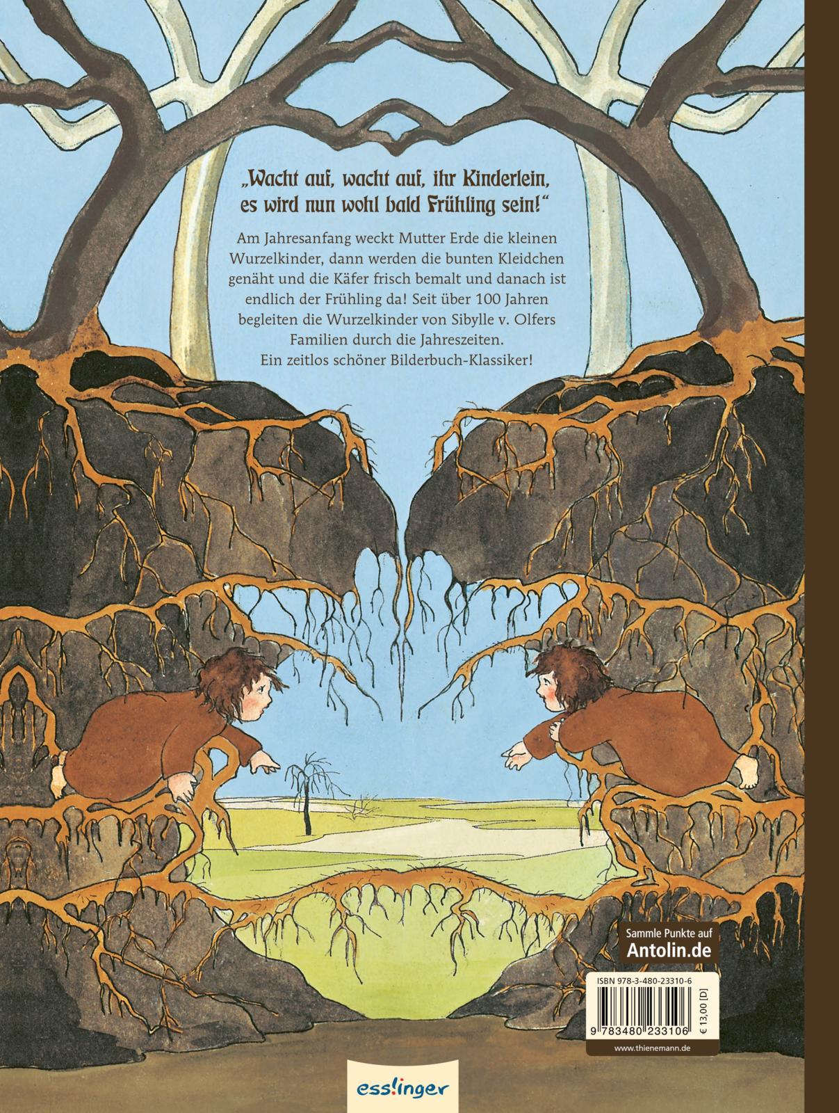 „Wacht auf, wacht auf, ihr Kinderlein, es wird nun wohl bald Frühling sein!“ Am Jahresanfang weckt Mutter Erde die kleinen Wurzelkinder, dann werden die bunten Kleidchen genäht und die Käfer frisch bemalt und danach ist endlich der Frühling da! Seit über 100 Jahren begleiten die Wurzelkinder von Sibylle v. Olfers Familien durch die Jahreszeiten. Ein zeitlos schöner Bilderbuch-Klassiker!