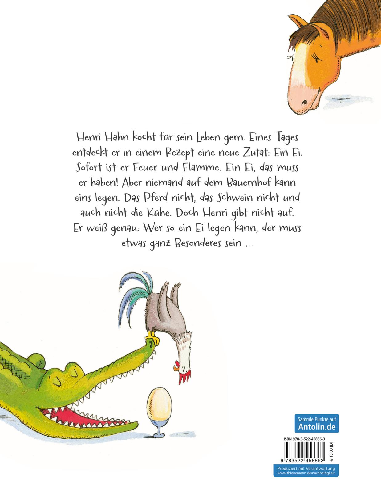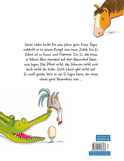 Henri Hahn ist Koch aus Leidenschaft. Eines Tages entdeckt er in einem Rezept eine neue Zutat: ein Ei. Henri ist sofort Feuer und Flamme, denn er spürt: Wer so ein Ei legen kann, der muss etwas ganz Besonderes sein! Er macht sich auf die Suche und erlebt dabei einige Überraschungen ...