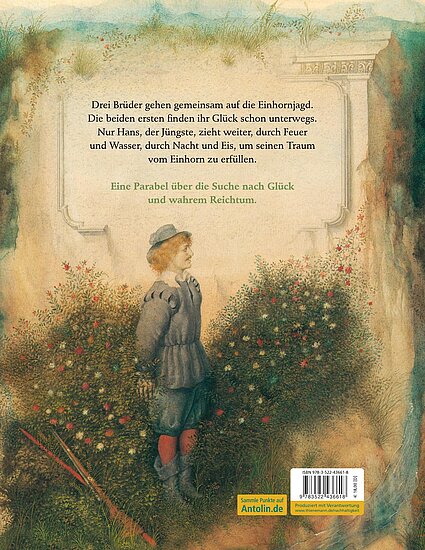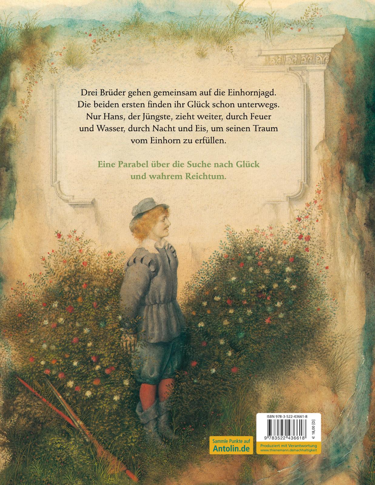 Drei Brüder machen sich gemeinsam auf den Weg, das sagenumwobene Einhorn zu fangen. Doch bereits unterwegs finden die beiden älteren Brüder ihr Glück und sind damit zufrieden. Der Jüngste allerdings zieht weiter, durch Feuer und Wasser, durch Nacht und Eis, um seinen Traum vom Einhorn zu erfüllen. Als er schließlich ein Blick auf das edle Tier wirft, erschaudert er und senkt sein Schießgewehr zu Boden. Er kehrt um, als zufriedener und erfüllter, wenngleich nicht reicher Mann.