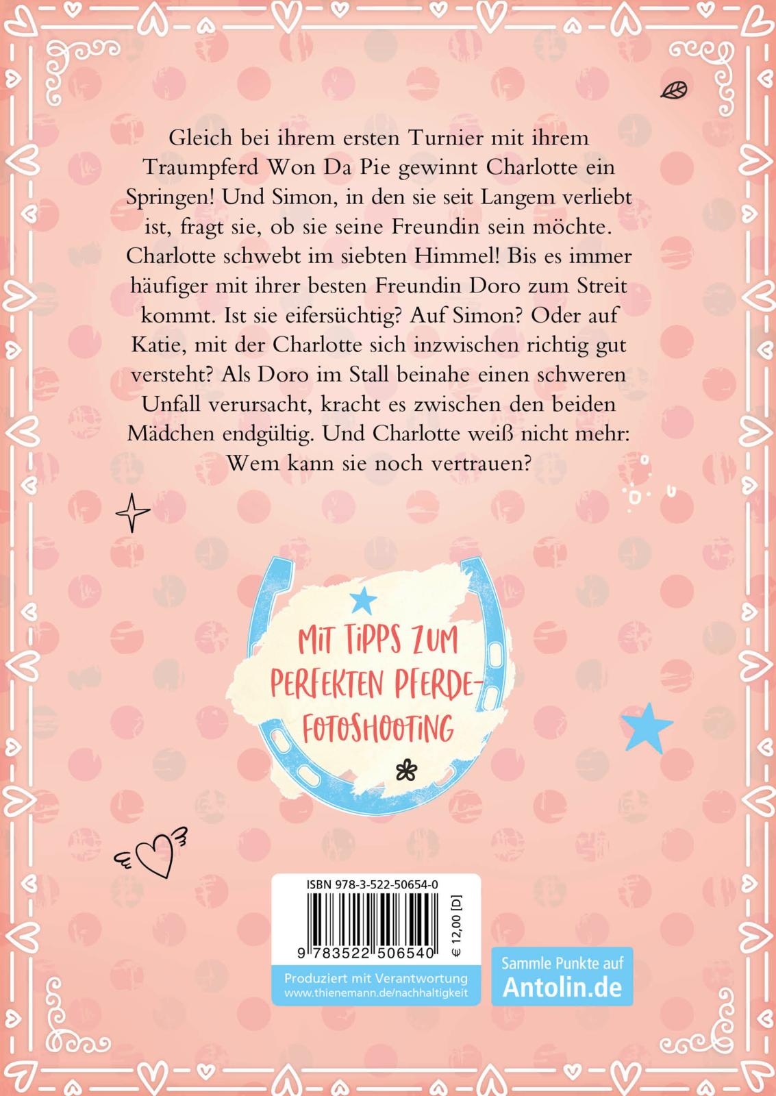 Gleich bei ihrem ersten Turnier mit ihrem Traumpferd Won Da Pie gewinnt Charlotte ein Springen! Und Simon, in den sie seit Langem verliebt ist, fragt sie, ob sie seine Freundin sein möchte. Charlotte ist überglücklich! Doch dann kommt es immer häufiger zum Streit mit ihrer besten Freundin Doro. Ist sie eifersüchtig? Auf Simon? Oder auf Katie, mit der Charlotte sich inzwischen richtig gut versteht? Als Doro im Stall beinahe einen schweren Unfall verursacht, kracht es zwischen den beiden Mädchen endgültig. Und Charlotte weiß nicht mehr: Wem kann sie noch vertrauen?