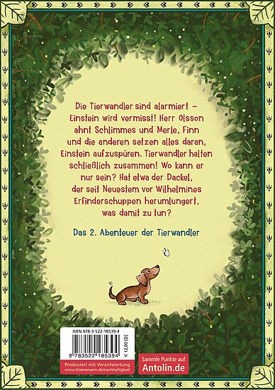 Die Tierwandler sind alarmiert - Einstein wird vermisst! Hat das Verschwinden etwas mit seiner Verwandlung zu tun? Und will ihnen der Dackel, der seit Neuestem vor Wilhelmines Erfinderschuppen herumlungert, irgendwas dazu sagen? Herr Olsson ahnt Schlimmes und er und die Kinder setzen alles daran, Einstein zu finden.