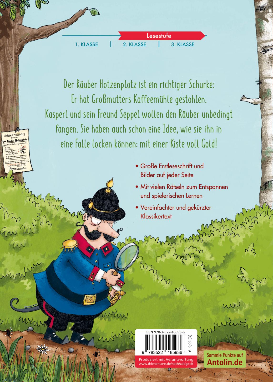 Der Räuber Hotzenplotz ist ein ganz schöner Schurke: Er hat Großmutters Kaffeemühle gestohlen. Kasperl und sein Freund Seppel wollen den Räuber unbedingt fangen! Sie haben auch schon eine Idee, wie sie ihn in eine Falle locken können: mit einer Kiste voll Gold. Doch ihr Plan geht schief und unglücklicherweise geraten sie nicht nur in die Hände vom Räuber Hotzenplotz, sondern auch in die vom bösen Zauberer Petrosilius Zwackelmann. Kasperl und Seppel müssen sich etwas einfallen lassen!