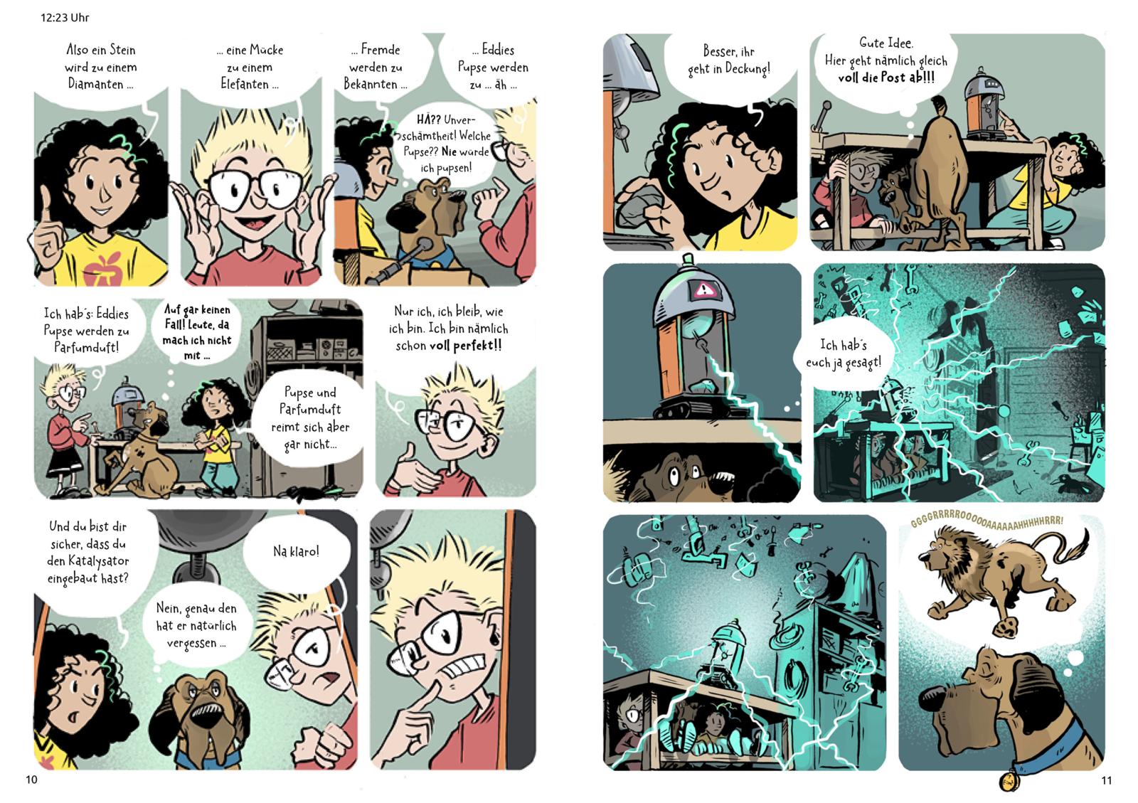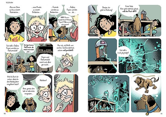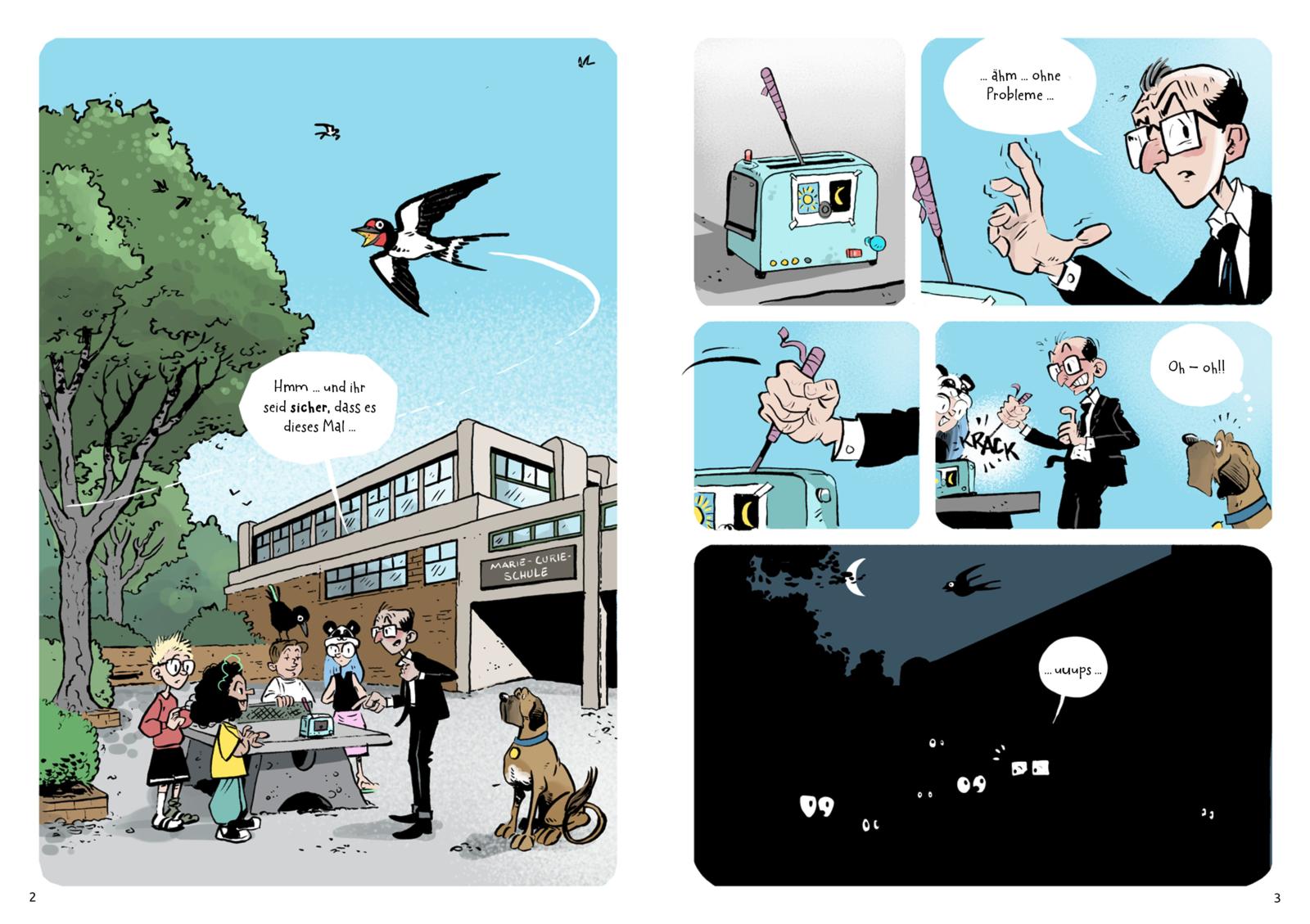 Perfekt für alle, die bunte Comics mit schrägen Humor, spannende Experimente und lustige Schulgeschichten lieben.