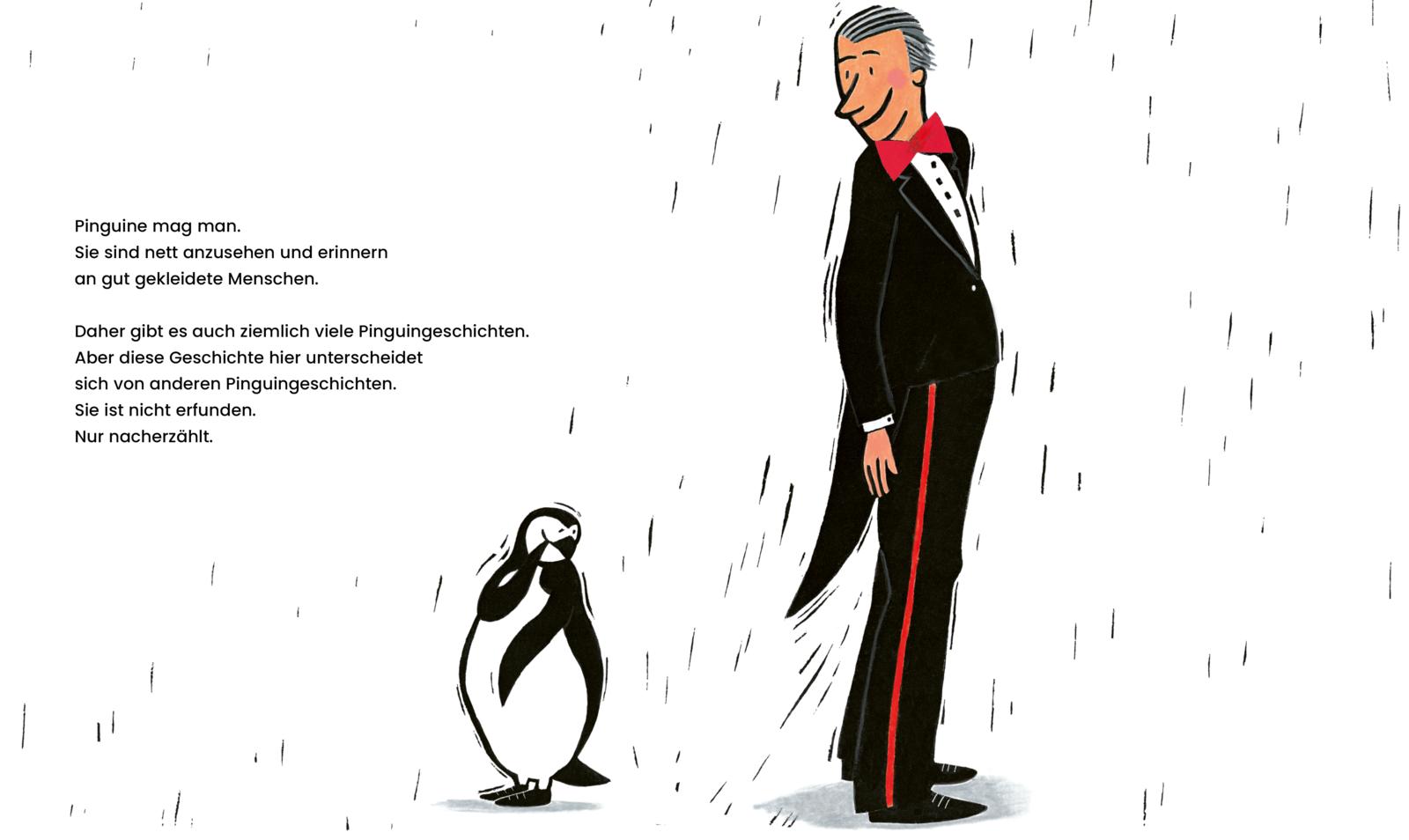 • Liebevolle Illustrationen zeigen Pinguine, Tiere und das Abenteuer Familie