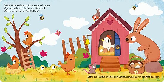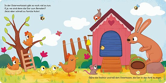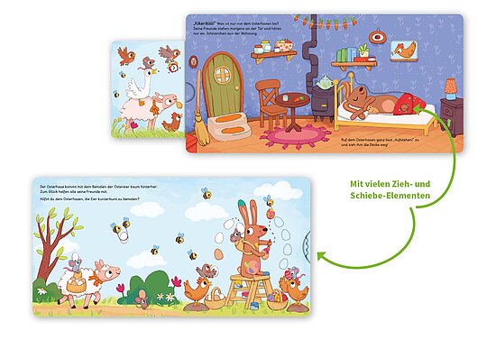 - Mit Schiebe- und Drehelementen auf jeder Seite: großer Osterspaß garantiert