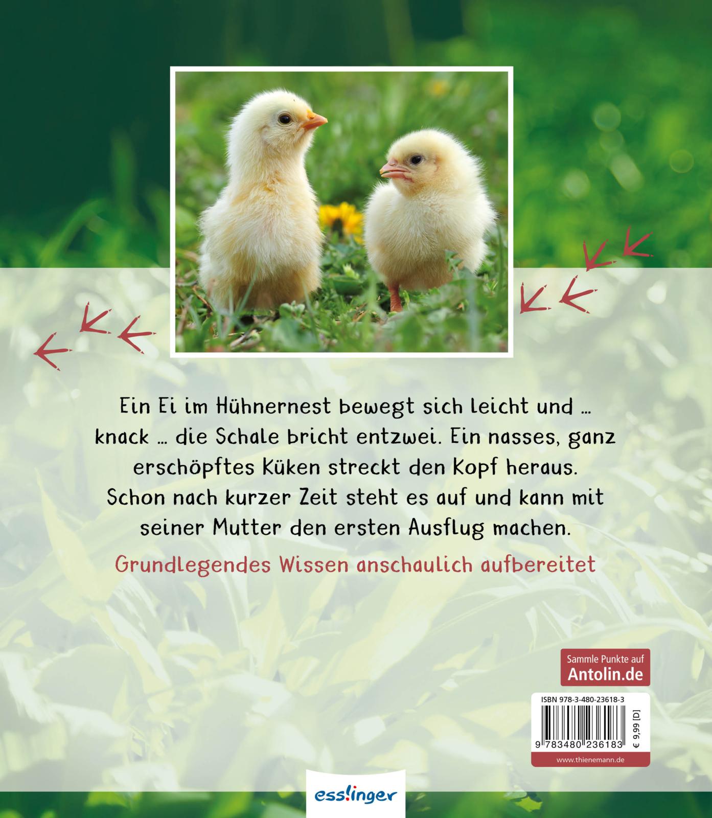 Kikeriki! Der Hahn weckt alle Bewohner des Hühnerhofs. Doch was ist das? Im Hühnernest liegen acht Eier. Eines davon bewegt sich leicht und ... knack ... die Schale bricht entzwei. Ein nasses, ganz erschöpftes Küken streckt den Kopf heraus.