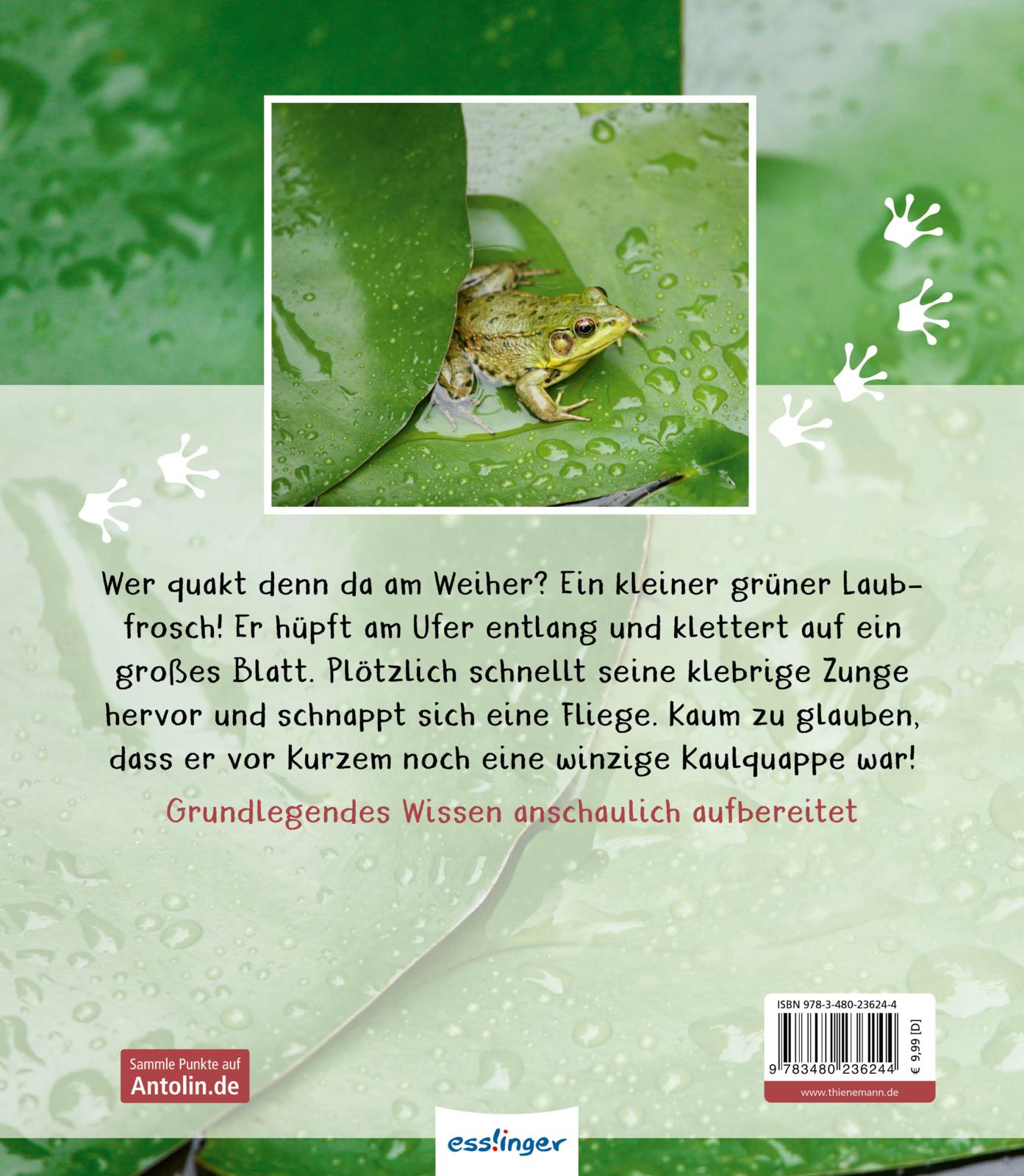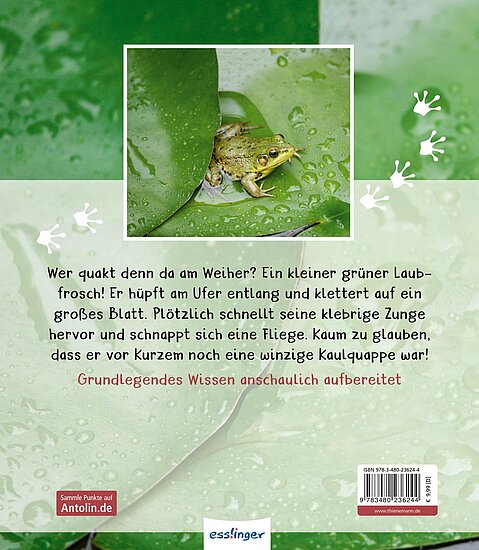 Der kleine Laubfrosch hüpft, schwimmt und klettert in den Bäumen herum. Ein echter Akrobat! Dabei war er vor kurzem noch eine winzige Kaulquappe ... Grundlegendes Wissen über den Frosch – kindgerecht aufbereitet und fotografiert.