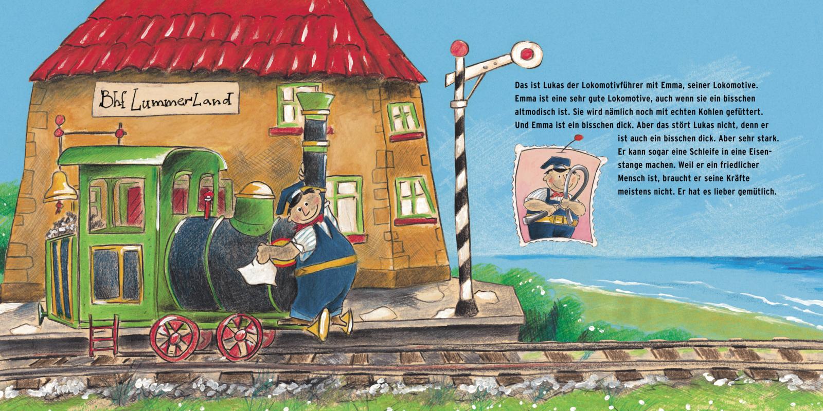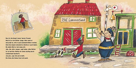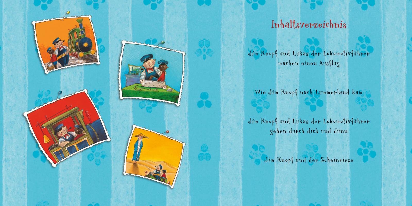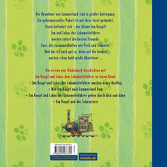 Sammelband der ersten vier Bilderbuch-Geschichten mit Jim Knopf und Lukas dem Lokomotivführer für Kinder ab 4 Jahren.