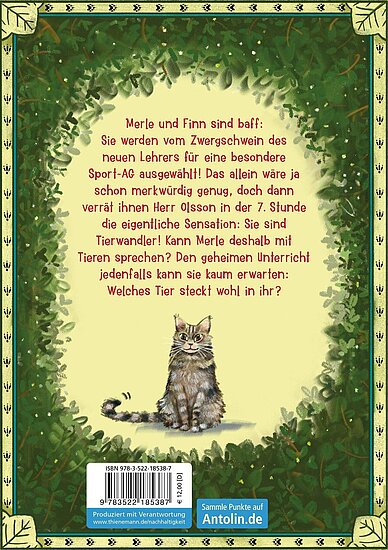 Merle und Finn sind baff: Sie werden vom Zwergschwein des neuen Lehrers für eine besondere Sport-AG ausgewählt! Das allein wäre schon merkwürdig genug, doch dann verrät ihnen Herr Olsson in der 7. Stunde die eigentliche Sensation: Sie sind Tierwandler und können sich in Tiere verwandeln! Jedes Kind lernt nun, in seiner Tiergestalt – bei Merle ist es eine Eule, bei Finn ein Wiesel – unterwegs zu sein. Doch plötzlich passieren in der Schule merkwürdige Dinge, die ausgerechnet Herrn Olsson zur Last gelegt werden. Das können die Kinder nicht zulassen und das erste Abenteuer für die Tierwandler beginnt!