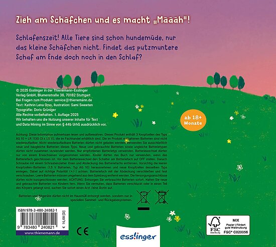 Dieses liebevoll gestaltete Pappebuch fördert spielerisch die Sprachentwicklung und Feinmotorik - und sorgt für jede Menge Mitmach-Spaß: Am Buch ist ein weiches Stoffschäfchen befestigt. Zieht das Kind daran, erklingt ein feines "Määääh"!