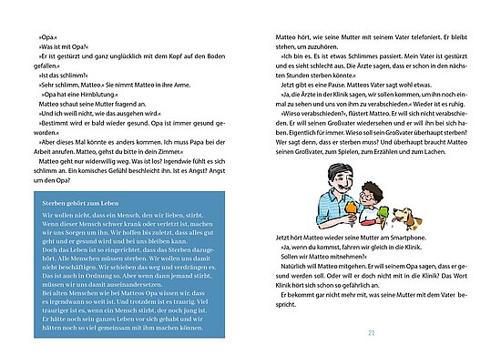 Wenn ein geliebter Mensch stirbt, ist plötzlich alles anders. Kinder wie Matteo, Luisa und Maxi erleben, wie schmerzhaft Abschied sein kann – und wie viele Fragen dabei auftauchen. Dieses erzählende Sachbuch begleitet Kinder einfühlsam durch die Zeit der Trauer: Es erzählt von echten Gefühlen, erklärt, was bei einer Beerdigung passiert, warum Menschen trauern und wie Trost möglich wird. Die Geschichten greifen typische Kinderfragen auf und geben ehrliche, verständliche Antworten. Die liebevollen, atmosphärischen Bilder helfen Kindern, ihre Gefühle besser auszudrücken und erleichtern das Gespräch darüber. So entsteht ein geschützter Raum, in dem Kinder ihre Trauer annehmen und Erwachsene hilfreiche Impulse für Gespräche erhalten.