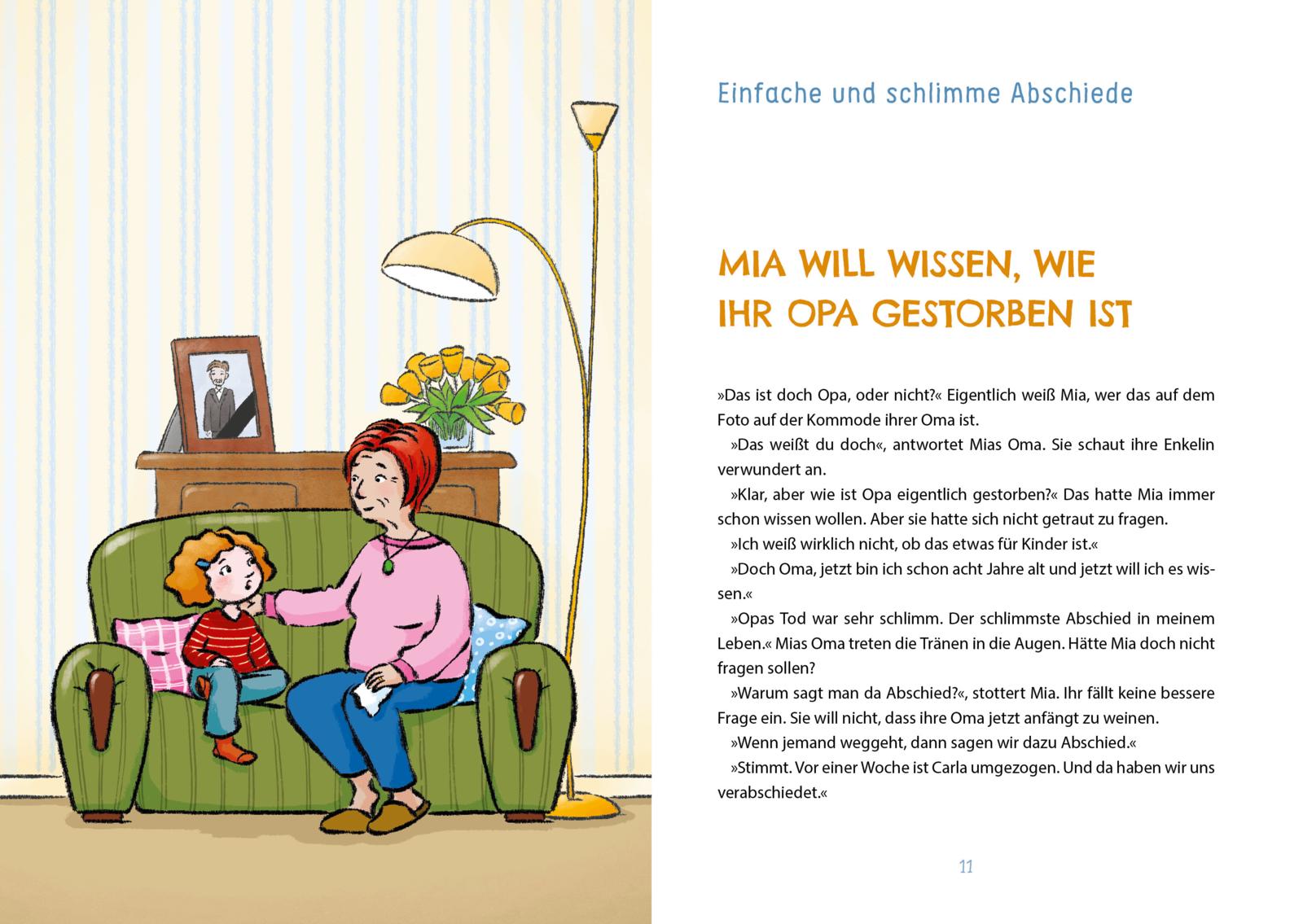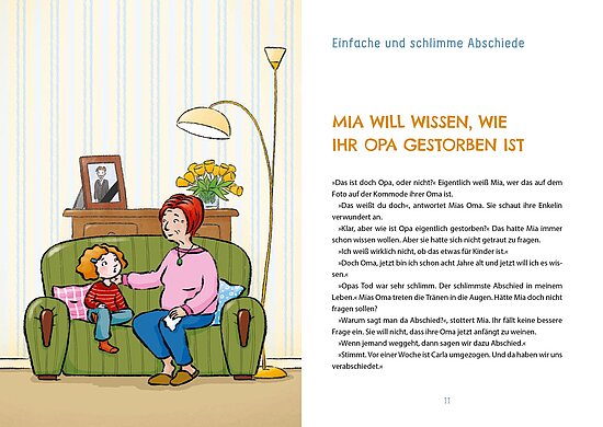 - Kindgerechte Antworten auf Fragen wie: Warum tragen Menschen Schwarz? Was passiert bei einer Trauerfeier? Wo sind die Verstorbenen?