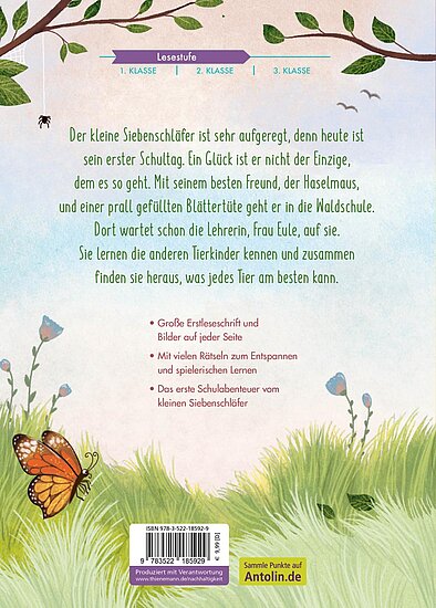 Der kleine Siebenschläfer ist sehr aufgeregt, denn heute ist sein erster Schultag! Zum Glück ist er mit seinem besten Freund, der Haselmaus, unterwegs. Zusammen gehen sie mit ihren prall gefüllten Blättertüten in die Waldschule, wo ihre Lehrerin schon auf sie wartet. Sie lernen die anderen Tierkinder kennen, machen Pause und finden heraus, was jedes Tier am besten kann. Und was kann der kleine Siebenschläfer am besten? Genau, einschlafen! Besonders nach so einem turbulenten Tag wie heute.