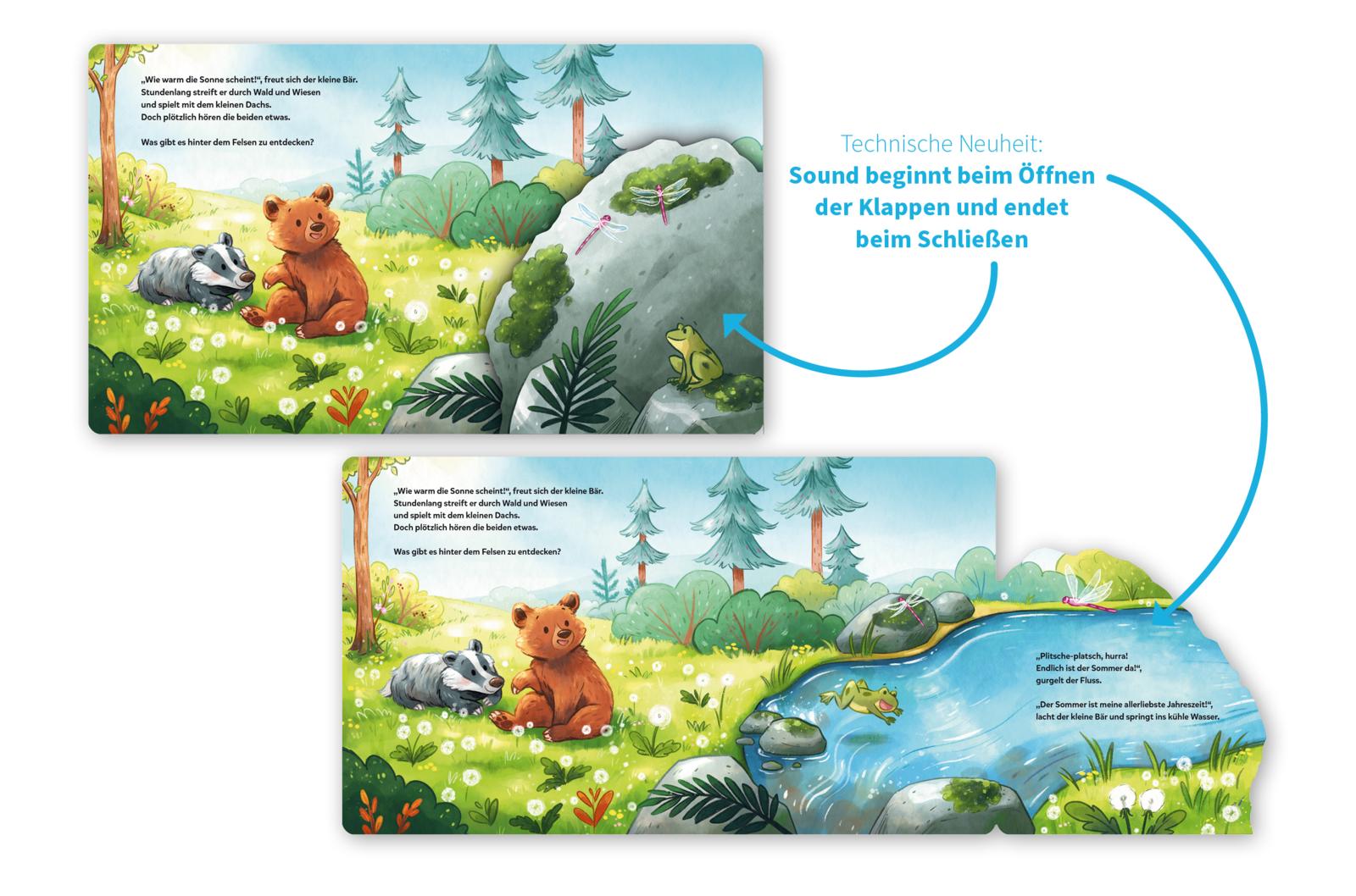 Die Aktivierung des Sounds könnte nicht einfacher sein. Schon die Allkleinsten können selbst die stabile Klappe öffnen und der Sound beginnt. Kein ärgerliches Drücken oder vorab aktivieren nötig. Schön für die Eltern: Der Sound endet, wenn man die Klappe wieder schließt. Somit ist Vorlesespaß garantiert.