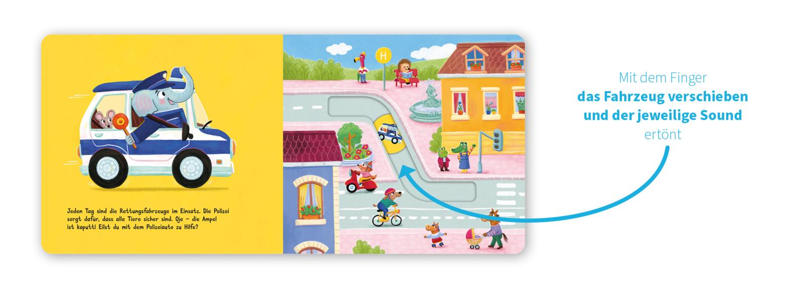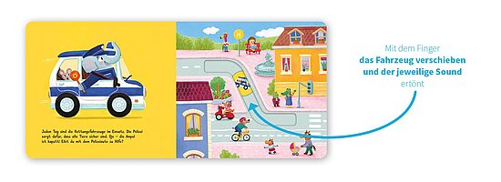 Die Allerkleinsten schieben die Fahrzeuge spielend leicht zum Ziel. Dabei erleben sie spannende Rettungssituationen mit typischem Sound!