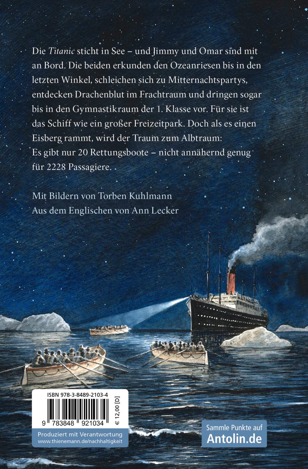 Das gigantischste Passagierschiff der Welt tritt seine Jungfernfahrt über den Atlantik an. Als 3. Klasse-Passagiere sind auch Jimmy und Omar an Bord. Nachts schleichen sich die beiden Freunde auf Partys an Deck, tagsüber erkunden sie die Titanic von den Frachträumen über die Crew-Gänge bis hin in die pompöse 1. Klasse. Für sie ist das Schiff wie ein großer Freizeitpark. Doch als es einen Eisberg rammt, wird der Traum zum Albtraum. Denn es gibt nur 20 Rettungsboote – nicht annähernd genug für 2228 Passagiere.