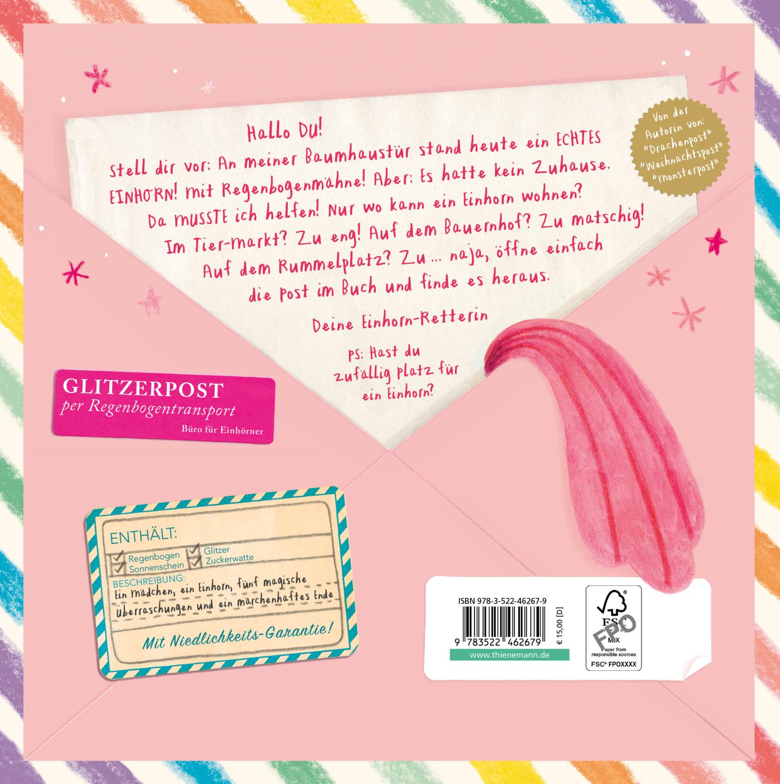 Stell dir vor, eines Morgens wartet ein Einhorn vor deiner Tür! In diesem besonderen Bilderbuch nimmt ein mutiges Mädchen das zauberhafte Wesen auf und begleitet es auf seiner Reise durch Tier-Markt, Bauernhof, Rummelplatz und Schloss. Gemeinsam erleben sie aufregende Momente, öffnen echte Briefe und entdecken, was es bedeutet, füreinander da zu sein.