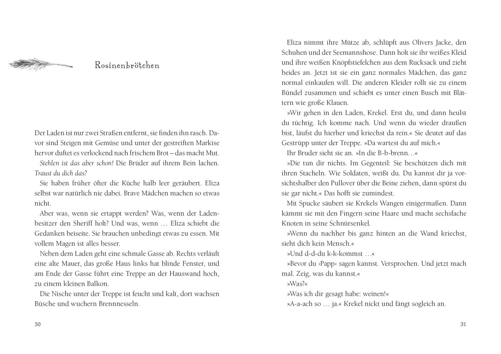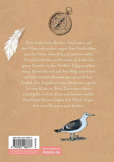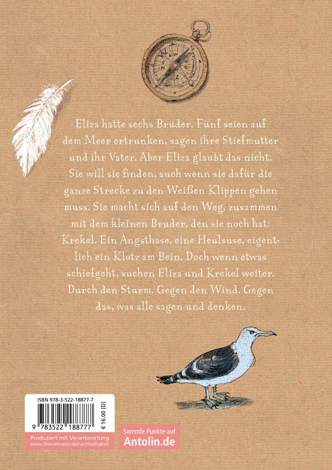 Eliza glaubt nicht an das Verschwinden ihrer Brüder – und schon gar nicht daran, dass sie für immer verloren sind. Mutig macht sie sich auf eine gefährliche Rettungsmission, begleitet nur von ihrem kleinen Bruder Krekel. Um unerkannt zu bleiben, verkleidet sie sich als Junge und wagt sich auf ein Schiff, das sie über das wilde Meer zu den weißen Klippen führen soll. Doch der Weg ist voller Gefahren: Sturmfluten, Hunger und ein uralter Fluch stellen Eliza immer wieder auf die Probe. Nur mit Herz, Köpfchen und Geschwisterliebe kann sie das Unmögliche schaffen – und vielleicht ihre Familie retten.