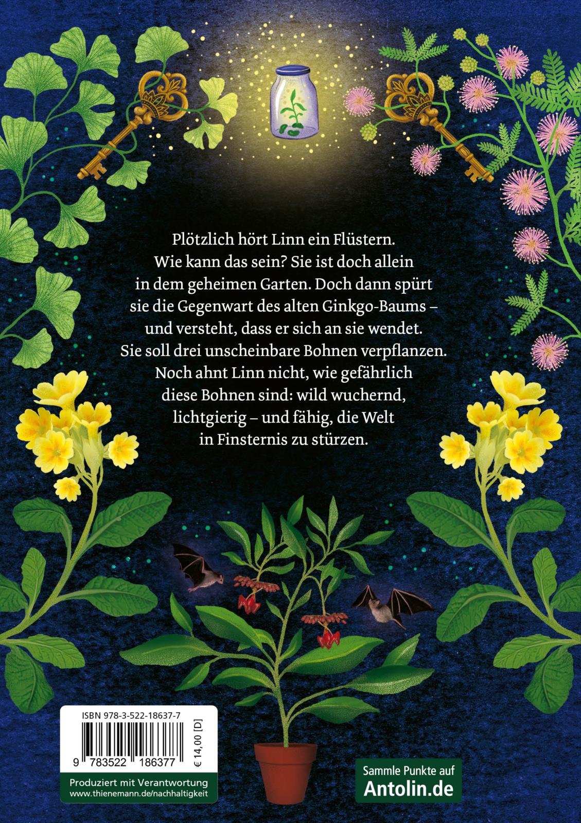 Plötzlich hört Linn ein Flüstern. Wie kann das sein? Sie ist doch allein in dem geheimen Garten. Doch dann spürt sie die Gegenwart des alten Ginkgo-Baums – und versteht, dass er sich an sie wendet. Sie soll drei unscheinbare Bohnen verpflanzen. Noch ahnt Linn nicht, wie gefährlich diese Bohnen sind: wild wuchernd, lichtgierig - und fähig, die Welt in Finsternis zu stürzen.
