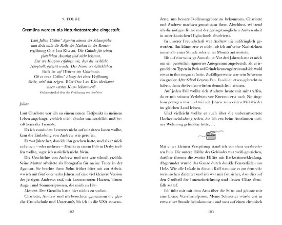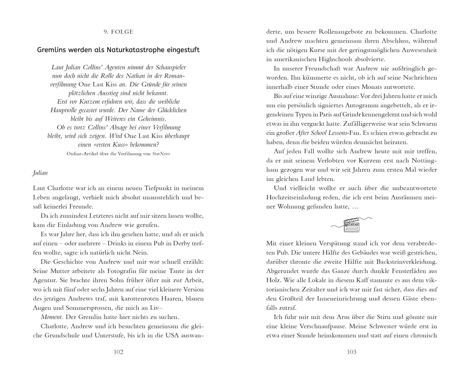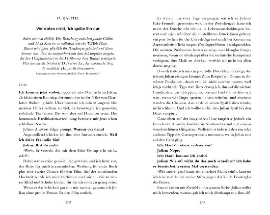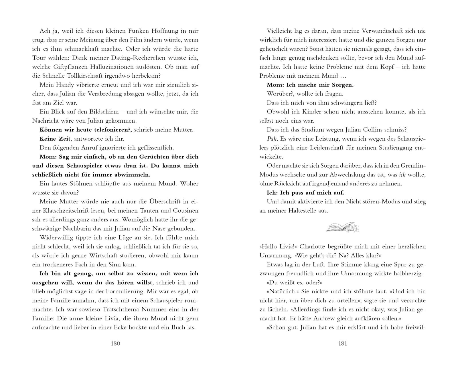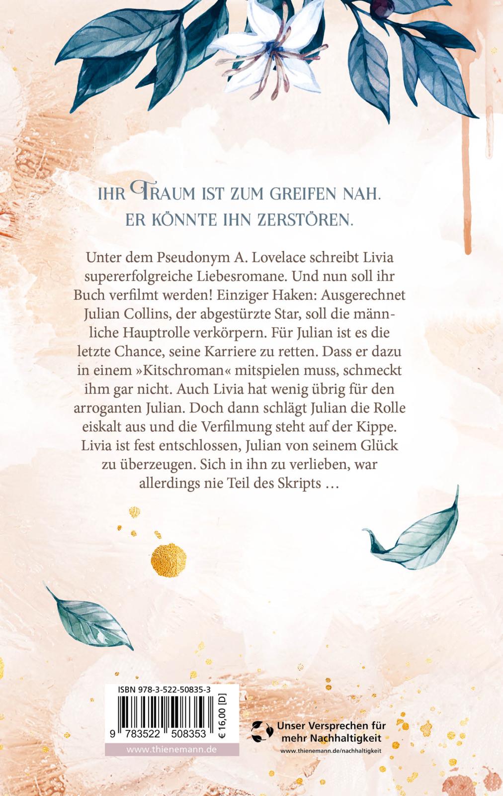 Studentin bei Tag – Bestsellerautorin bei Nacht. Unter dem Pseudonym A. Lovelace schreibt Livia supererfolgreiche Liebesromane. Und nun soll ihr Buch verfilmt werden! Einziger Haken: Ausgerechnet Julian Collins, der abgestürzte Star, soll die männliche Hauptrolle verkörpern. Für Julian ist es die letzte Chance, seine Karriere zu retten. Dass er dazu in einem »Kitschroman« mitspielen muss, schmeckt ihm gar nicht. Auch Livia hat wenig übrig für den arroganten Julian. Doch dann schlägt Julian die Rolle eiskalt aus und die Verfilmung steht auf der Kippe. Livia ist fest entschlossen, Julian von seinem Glück zu überzeugen. Sich in ihn zu verlieben, war allerdings nie Teil des Skripts …