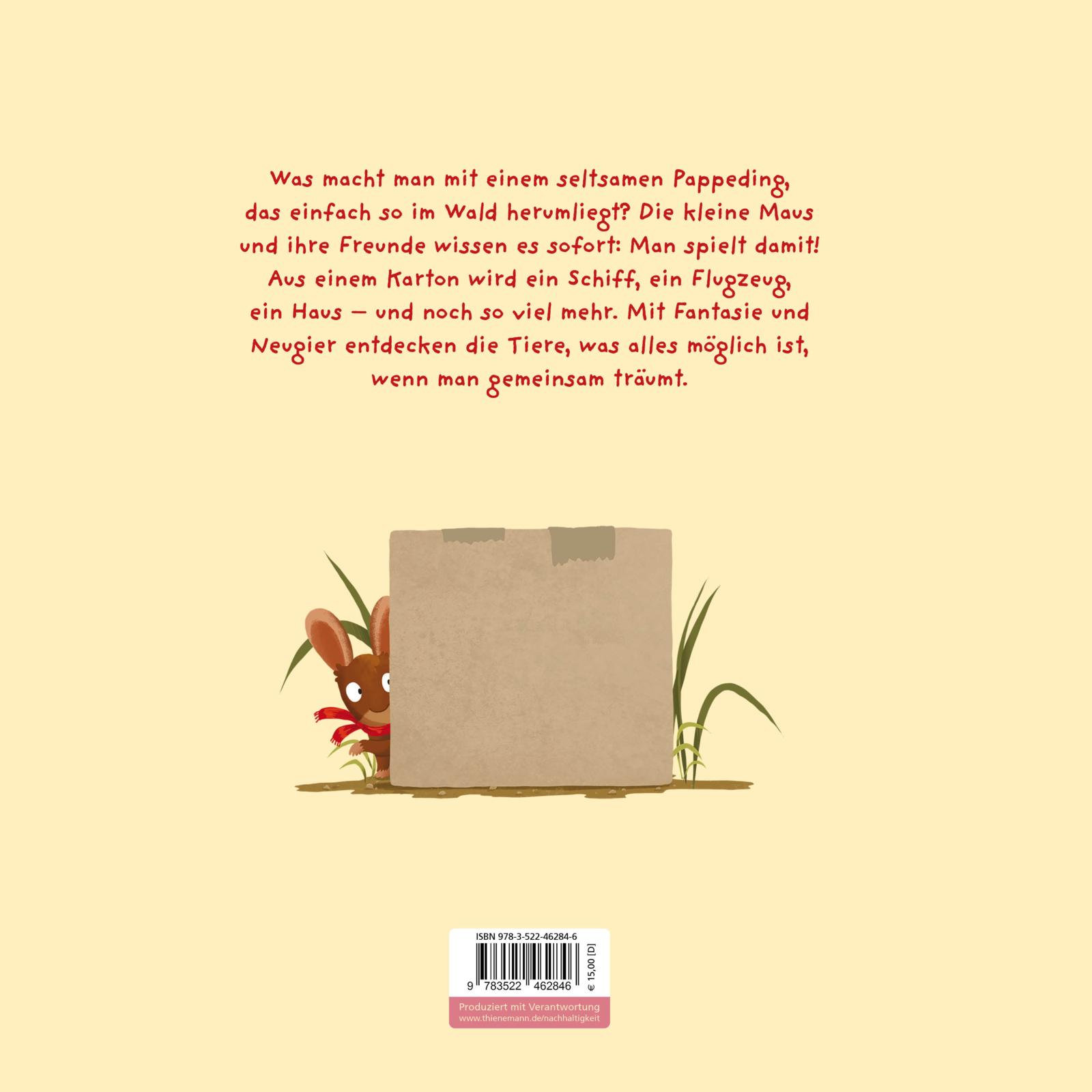Was macht man mit einem seltsamen Ding, das einfach so im Wald liegt? Die kleine Maus und ihre Freunde wissen es sofort: Man spielt damit! Aus einem einfachen Karton wird ein Schiff, ein Flugzeug, ein Haus – und noch so viel mehr. Mit Fantasie und Neugier entdecken die Tiere, was alles möglich ist, wenn man gemeinsam träumt. Dieses liebevoll illustrierte Bilderbuch feiert die Kreativität und zeigt, wie aus Alltäglichem große Abenteuer entstehen. Perfekt zum Vorlesen, Staunen und Immer-wieder-Anschauen!